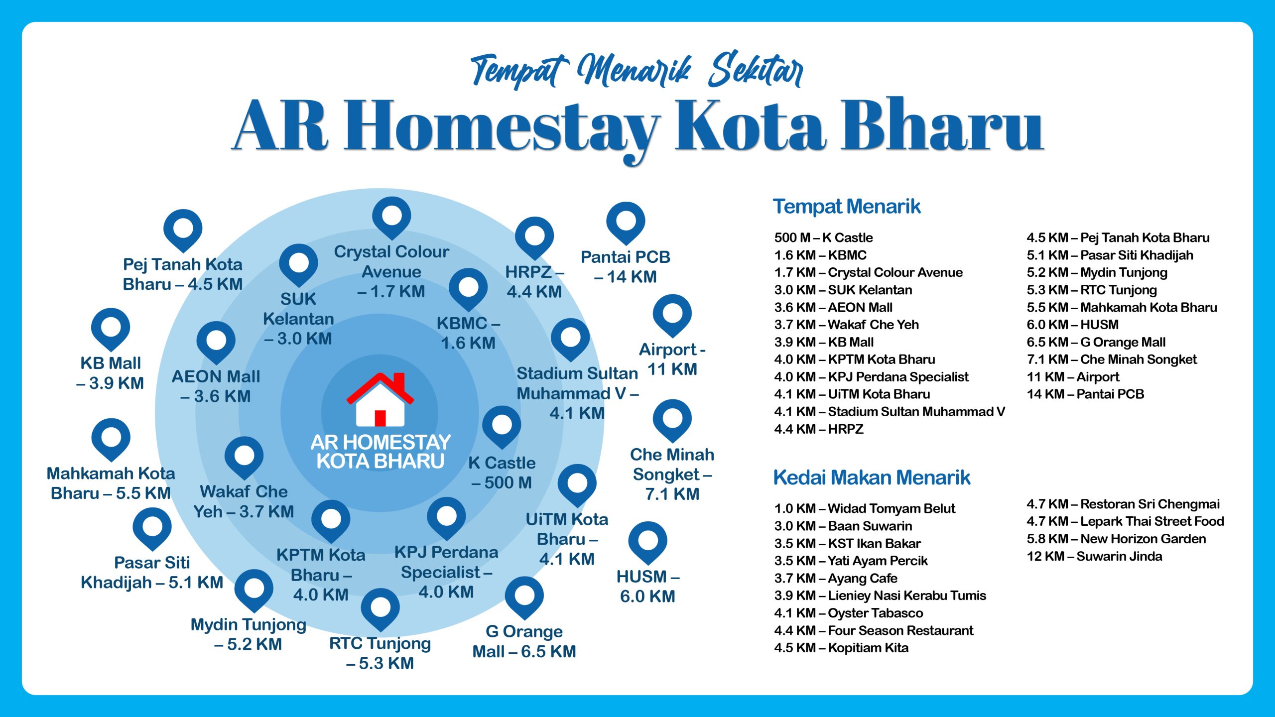 AR Homestay Kota Bharu terletak di lokasi strategik di pusat bandar Kota Bharu.